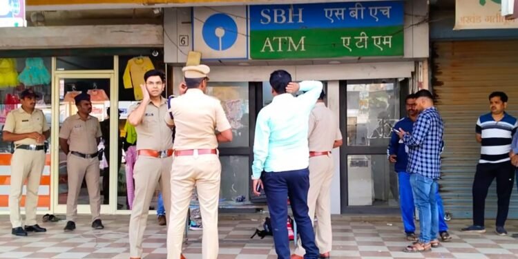 शहरात प्रमुख मार्गावरील एका बँकेचे एटीएम मशीन गायब करून चोरट्यांनी पोलिसांना आव्हान दिले आहे. पोलिसांच्या श्वान पथकाने माग काढण्याचा प्रयत्न केला मात्र त्यालाही अपयश आले. दरम्यान,अप्पर पोलीस अधीक्षक काँवत तसेच सहायक पोलीस अधीक्षक एम. रमेश यांनी एटीएम फोडलेल्या ठिकाणची पाहणी केली.
