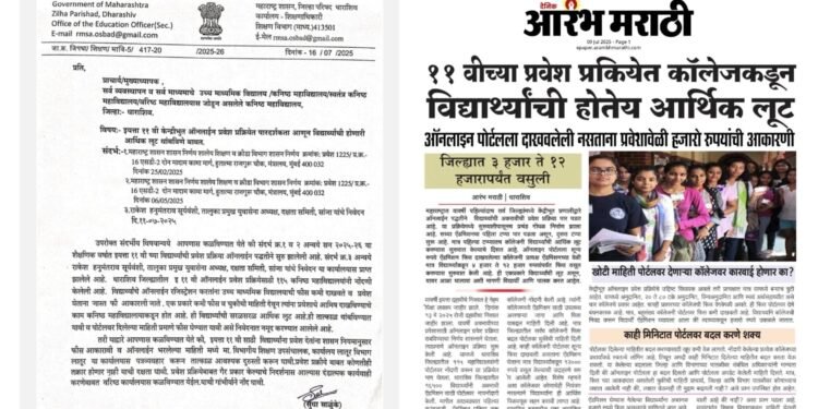 आरंभ मराठीच्या बातमीनंतर शिक्षण विभागाचे सर्व प्राचार्यांना पत्र; अकरावी ऍडमिशन मधील विद्यार्थ्यांची आर्थिक लूट थांबणार