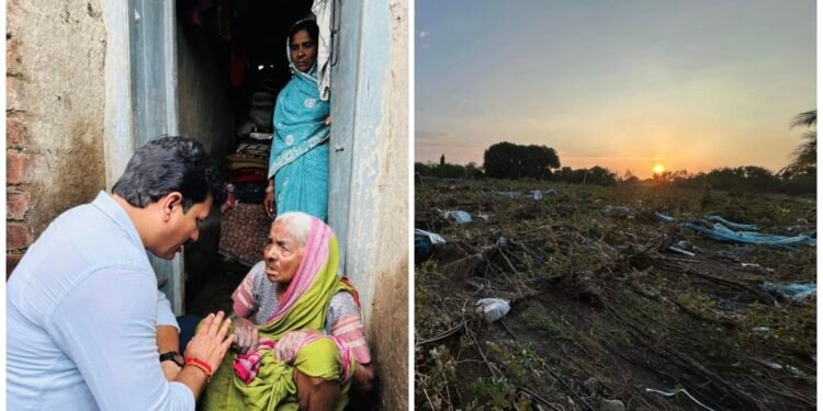 धाराशिव जिल्ह्यात अतिवृष्टीमुळे बळीराजा उन्मळून पडला आहे. सर्वत्र झालेल्या नुकसानीमुळे शेतकऱ्यांचे नैतिक धैर्य खचले आहे. अशा काळात जिल्ह्यातील लोकप्रतिनिधी शेतकऱ्यांच्या बांधावर उतरून त्यांना नैतिक बळ देण्याचा प्रयत्न करत आहेत.