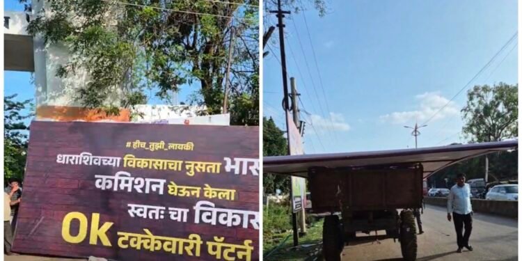 धाराशिव शहरात मागील दोन दिवसांपासून स्थगिती देण्यात आलेल्या रस्त्यांच्या कामावरून महाविकास आघाडी आणि भाजप या दोन प्रमुख पक्षांमध्ये जोरदार आरोप-प्रत्यारोपांची मालिका सुरू आहे. या वादाला सोशल मीडियासह शहरातील प्रमुख चौकांवर लावण्यात आलेल्या होर्डिंग्जमुळे अधिक रंग चढला आहे.