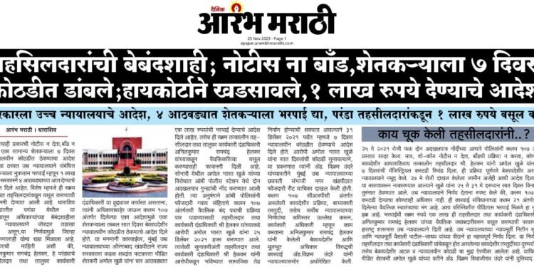 तहसिलदारांची बेबंदशाही; नोटीस ना बाँड, परंड्याच्या तहसीलदाराने शेतकऱ्याला 7 दिवस कोठडीत डांबले; उच्च न्यायालयाने खडसावले, शेतकऱ्याला 1 लाख रुपये देण्याचे आदेश
