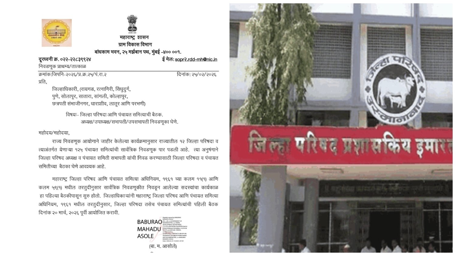 मात्र अखेर आज बुधवार (दि.२५) रोजी महाराष्ट्र शासनाच्या ग्रामविकास विभागाकडून संबंधित पत्र जिल्हा प्रशासनाला प्राप्त झाल्याने सत्ता स्थापनेचा मार्ग मोकळा झाला आहे. या पत्रानुसार जिल्हा परिषद आणि पंचायत समित्यांच्या अध्यक्ष व सभापती निवडीसाठी आवश्यक बैठका घेण्याचे निर्देश देण्यात आले असून, या सर्व पहिल्या बैठका २० मार्च २०२६ पूर्वी घेणे बंधनकारक करण्यात आले आहे.