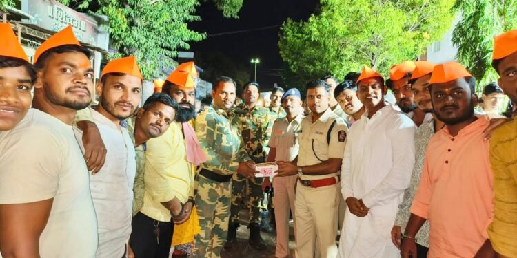पोलीस बांधवांना अल्पोपहार वाटप; विसर्जन मिरवणुकीत युवा सेनेच्या वतीने नेते दिनेश बंडगर यांचा स्तुत्य उपक्रम