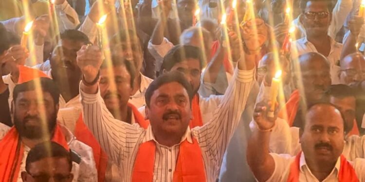मनोज जरांगे पाटील यांच्या अंतरवाली सराटी येथे सुरु असलेल्या आमरण उपोषणास पाठिंबा देण्यासाठी व मराठा आरक्षण संबंधी समाजाच्या जनजागृती साठी सकल मराठा समाजाच्या वतीने भव्य कँडल मार्च काढण्यात आला. गुरूवारी (दि. २६) सायंकाळी सात वाजता शहरातील छत्रपती शिवाजी महाराज चौक येथून कँडल मार्चची सुरूवात झाली. यावेळी शहरातील मराठा समाज बांधवानी मोठ्या संख्येने सहभाग घेतला. विशेष म्हणजे या कँडल मार्चमध्ये एरव्ही परस्पर विरोधात भूमिका घेणारे राजकीय नेते एकत्र आल्याने समाज बांधवांनी त्यांच्या या भूमिकेचे स्वागत केले.
