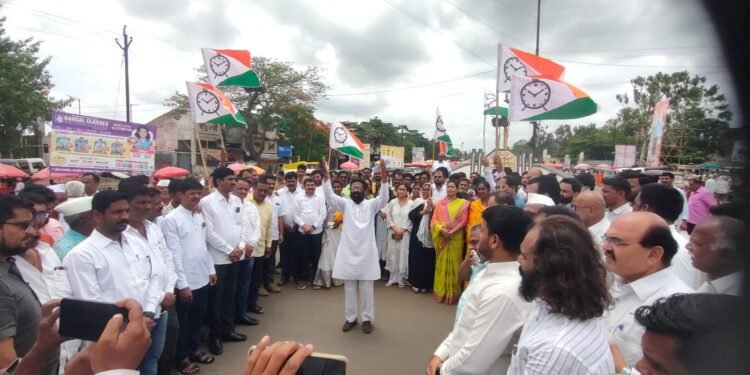 राष्ट्रवादी काँग्रेस पार्टीचे कार्याध्यक्ष संजय पाटील दुधगावकर यांच्या अध्यक्षतेखाली पक्षाची बैठक झाली. प्रस्ताविक करताना दुधगावकरांनी जिल्ह्यातील सर्व पदाधिकारी,कार्यकर्ते, शेतकरी,शेतमजूर, दलित, आदिवासी, अल्पसंख्यांक, कामगार शंभर टक्के शरद पवार यांच्या पाठीमागे आहेत, हे हात वरती करून सांगावे,असे आवाहन केले. यावेळी सर्वांनी हात वर करून अनुमोदन दिले. जिल्ह्याचे ज्येष्ठ नेते, माजी आमदार राहुल मोटे यांनी हा जिल्हा एकसंघ शरद पवार यांच्या पाठीमागे राहणार, अशी ग्वाही दिली. जिल्ह्यातील प्रमुख नेते,पदाधिकारी, सर्व तालुकाध्यक्ष यांनी सर्व फ्रंटल जिल्हाध्यक्ष,सर्व शहराध्यक्ष यांनी अनुमोदन दिले.पक्षाचे जिल्हाध्यक्ष बिराजदार यांनी आपली भूमिका स्पष्ट केल्यानंतर त्यांच्या जागी जिल्हाध्यक्ष कोण,याबद्दल कार्यकर्त्यांना उत्सुकता असून, दुधगावकर यांचे नाव आघाडीवर असल्याची चर्चा सुरू झाली आहे. बैठकीसाठी जिल्हा कार्याध्यक्ष संजय पाटील दुधगावकर,माजी आमदार राहुल मोटे, प्रदेश सचिव मसूद शेख,जिल्ह्याचे नेते संजय निंबाळकर, युवती प्रदेशाध्यक्ष सक्षणाताई सलगर, ज्येष्ठ नेते संपतराव डोके,डॉ. प्रतापसिंह पाटील,महेंद्र धूरगुडे, अमित शिंदे, जिल्हा बँकेचे व्हाईस चेअरमन मधुकरराव मोटे, प्रा. संजय कांबळे, नितीन बागल,वाजिद पठाण, कादर खान,सतीश एखंडे,हबीब खान पठाण,अनिलदादा शिंदे, मझहर शेरेकर,रोहित बागल,नितीन बिक्कड, तालुकाध्यक्ष संजय पवार,श्याम घोगरे, श्रीधर भवर, हनुमंत पाटोळे,धैर्यशील पाटील, दिलीप घोलप, रंजना भोजने, शहराध्यक्ष अयाज शेख,मुसद्दीक काझी,रमेश मस्कर, महबूब शेख,प्रमोद वीर, नाना जमदाडे,जयंत देशमुख दशरथ माने, बलभीम गरड, नितीन चव्हाण, दौलत गाढवे,जिल्हाध्यक्ष शेखर घोडके,मनीषा पाटील,राहुल बनसोडे,अविनाश तांबारे, विशाल शिंगाडे,प्रदीप डोके,असदखान पठाण,अमोल पाटील,सतीश घोडेराव,अशोक नलावडे,महेश नलावडे, मनोज मुदगल,अमरसिंह देशमुख,रमेश देशमुख आदींसह आजी-माजी पदाधिकारी कार्यकर्ते मोठ्या संख्येने उपस्थित होते.