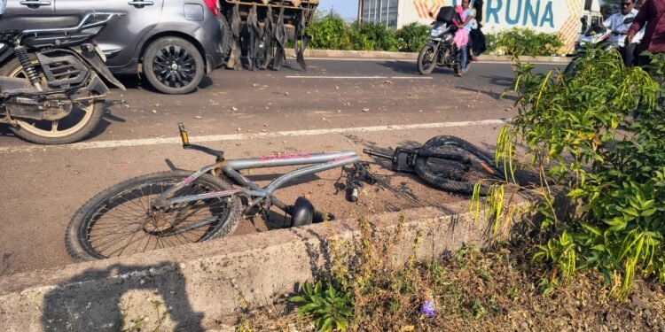 शाळेतून सायकलवर घरी निघालेल्या सहावीत शिकणाऱ्या एका विद्यार्थ्याला भरधाव ट्रकने चिरडल्याने विद्यार्थ्याचा जागीच मृत्यू झाल्याची घटना शहरातील छत्रपती संभाजी नगर-सोलापूर राष्ट्रीय महामार्गावर डी मार्टसमोर मंगळवारी दुपारी साडेतीनच्या सुमारास घडली आहे. छ्त्रपती संभाजी नगर ते सोलापूर राष्ट्रीय महामार्गावर बायपासला पर्यायी रस्ता नसल्याने चिमुकल्याचा बळी गेला असून, या घटनेनंतर प्रशासनाविरोधात संताप व्यक्त होत आहे.
