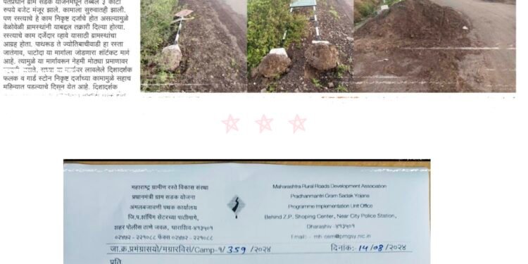 सुमारे 3 कोटी 40 लाख रुपये बजेट मंजूर असलेले या रोडचे काम व्यवस्थित झाले नसल्याच्या तक्रारी आरंभ मराठीकडे आल्या होत्या.त्यानंतर आरंभ मराठीने सचित्र वृत्त प्रसिद्ध केले होते. या वृत्ताची दखल घेऊन महाराष्ट्र ग्रामीण रस्ता विकास संस्थेचे उपअभियंता (धाराशिव) यांनी बातमीचा दाखला देत कंत्राटदार एस. व्ही. भोईटे यांना निकृष्ट कामाच्या संदर्भात पत्र काढले आहे.