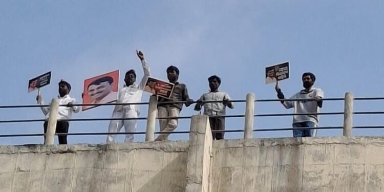 पोलिस ठाण्यासमोरील पाण्याच्या टाकीवर तरुणांचे आंदोलन सुरू, देशमुख कुटुंबियांना न्याय देण्यासाठी आक्रमक पवित्रा