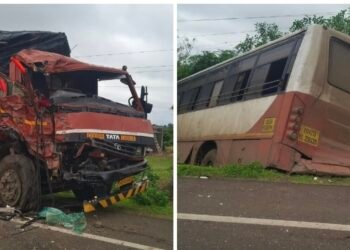 पाथरूड जवळ बस आणि टॅम्पोचा भीषण अपघात; टेम्पोचालक जागीच ठार