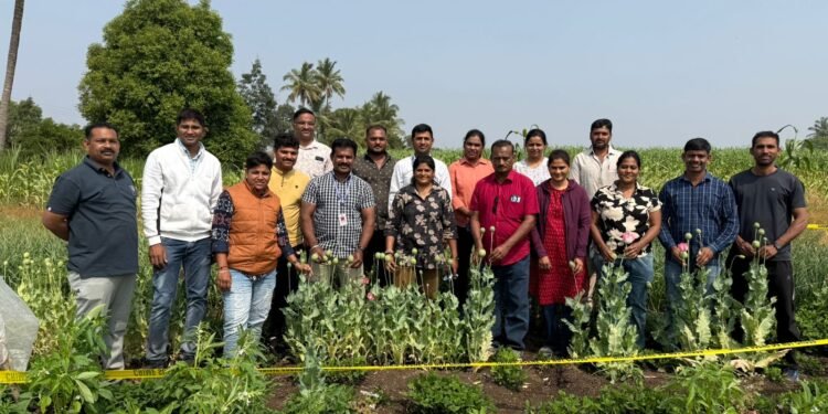 या माहितीच्या आधारे टास्क फोर्सने दिनांक १७ फेब्रुवारी रोजी खेड येथील गट क्रमांक १४१, १४२, १५३ व १७४ या शेतजमिनीत छापा टाकला. छापा टाकल्यानंतर संबंधित शेतजमिनीत अफूची झाडे फुल व बोंड्यासह मोठ्या प्रमाणात लागवड करून त्यांची देखभाल व देखभाल केली जात असल्याचे निदर्शनास आले.