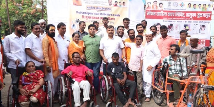 लोकसभा मतदार संघातील दिव्यांग बांधवांना दिव्यांग दिनाच्या पार्श्वभूमीवर तुळजापूर येथे शुक्रवारी (दि.१) खासदार ओमप्रकाश राजेनिंबाळकर यांच्या हस्ते व तुळजापूरचे गट विकास अधिकारी ताकभागे आणि तहसीलदार बोळंगे यांच्या प्रमुख उपस्थितीत साधन साहित्य वाटप करण्यात आले. या कार्यक्रमासाठी दिव्यांग बांधव मोठ्या संख्येने उपस्थित होते.
